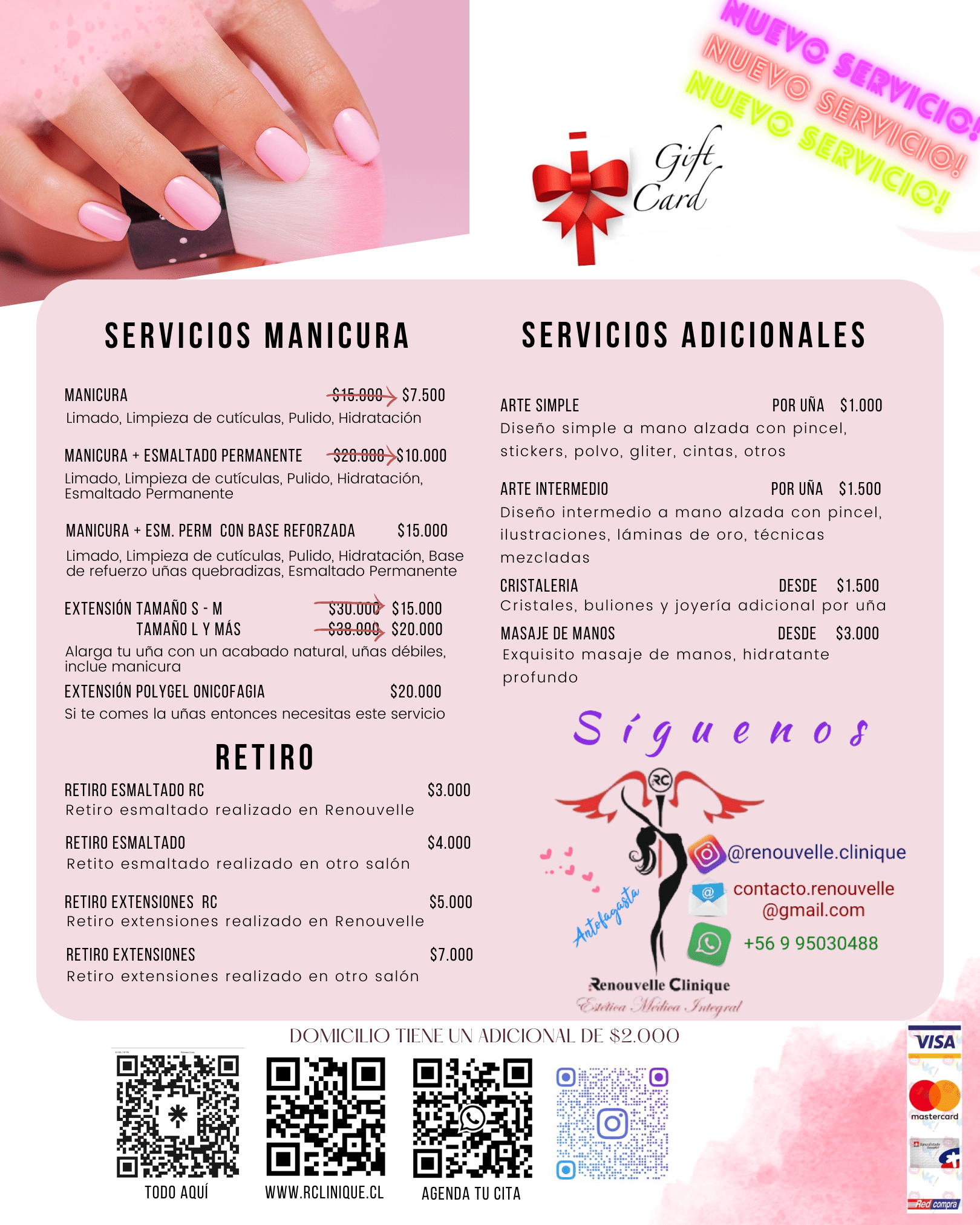 Aquí encontrarás una gama de servicios dsponibles para tus uñitas y hacerlas lucir su mejor versión, con precios al alcance de todos.